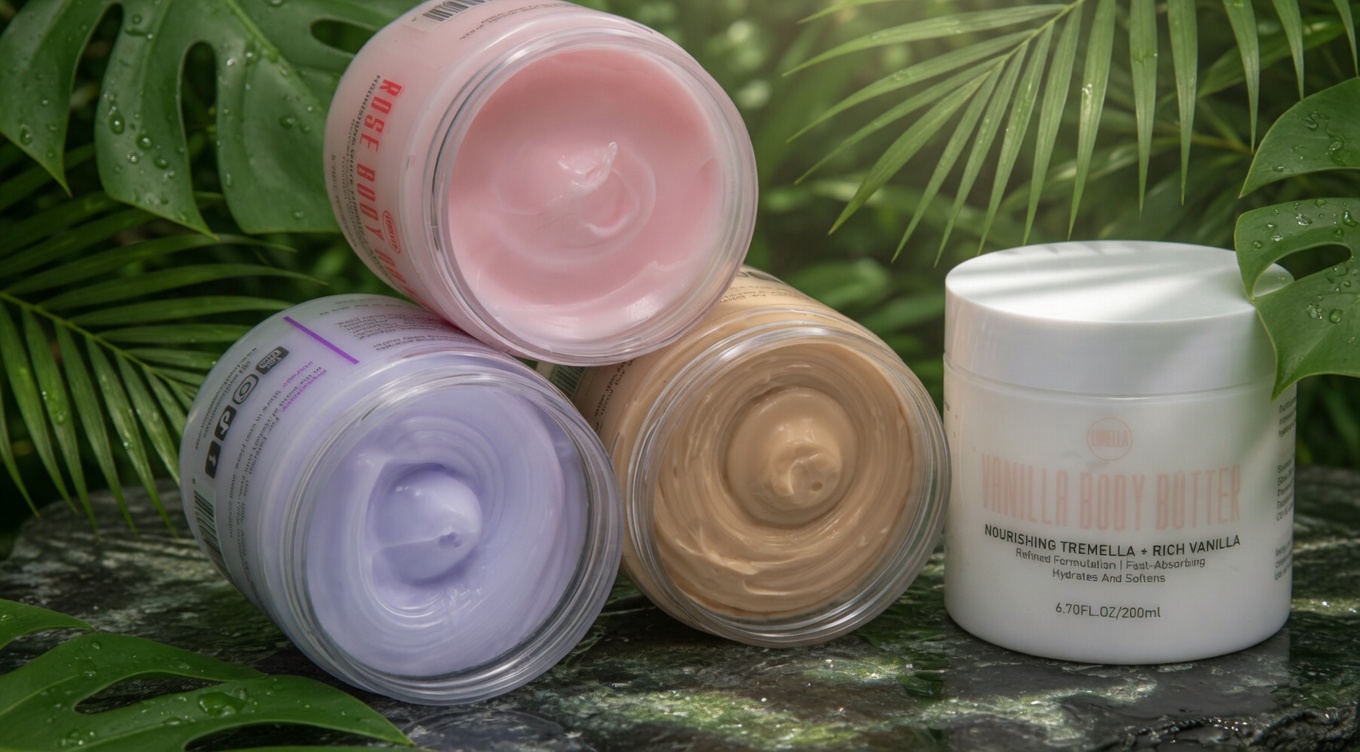 Description Indulge your skin with this luxurious set of four nourishing body butters. Infused with Tremella (White Fungus) for deep hydration, these fast-absorbing formulas are designed to soften and refine your skin texture. This collection features a variety of delightful scents to suit every mood: Coconut, Lavender, Vanilla, and Rose. Product Details Brand: Lurella Size: 6.70 fl oz / 200ml (per jar) Key Ingredient: Nourishing Tremella Mushroom Scents Included: Coconut: Refreshing and tropical. Lavender: Soothing and calming. Vanilla: Rich and comforting. Rose: Classic and attractive.